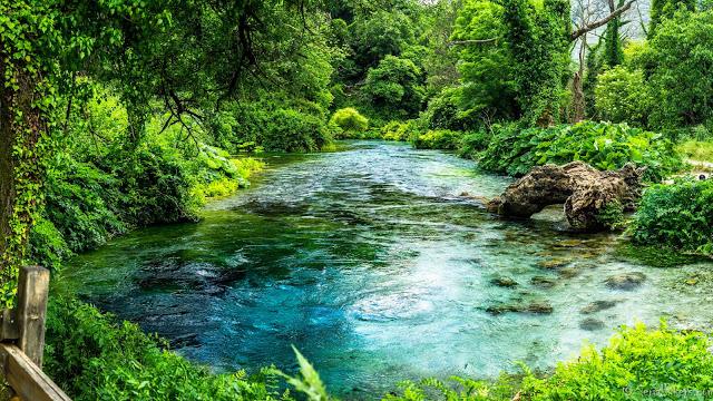 Son histoire : Au Sud de l’Albanie, à Finiq se trouve ce spectacle éternel du Blue eye. La source souterraine se remplit jusqu’à une cinquantaine de mètres en profondeur,voire plus. Elle est la mère de la rivière Bistricë, qui serpente l'Albanie du sud sur 25 km pour ne faire qu’un avec la mer Ionnienne. Sous les ombres d’une végétation généreuse, l’œil semble admirer le ciel. Une vue de haut des 180 Ha de l’ensemble de cette aire protégée soutient un paysage époustouflant, avec ce trou bleu d’une dizaine de diamètre.